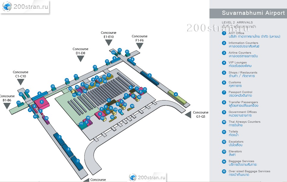 / Аэропорты Таиланда / BKK - Suvarnabhumi International, Таиланд, Бангкок / Схема аэропорта Бангкока "Суванапум" (Suvarnabhumi Airport). 2й этаж.