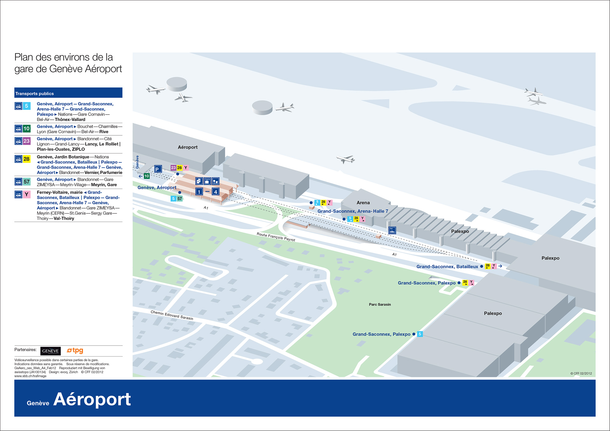 Схема окресностей аэропорта Женевы с остановками транспорта