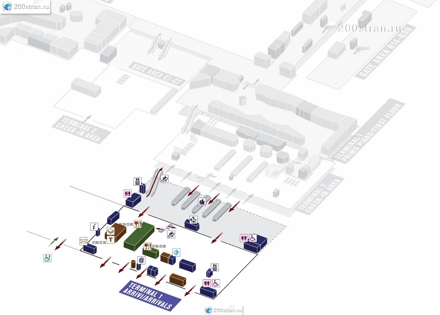 Схема аэропорта Рима Leonardo da Vinci International (Fiumicino) - FCO (Терминал 1 - Прилёт)