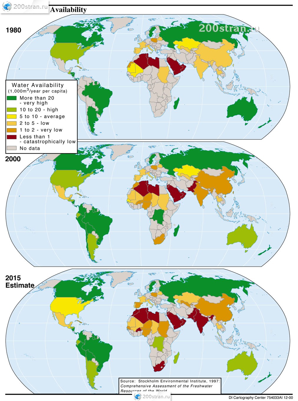 /   Экономические карты мира   /   Карта доступности водных ресурсов в мире - 1980-2015гг