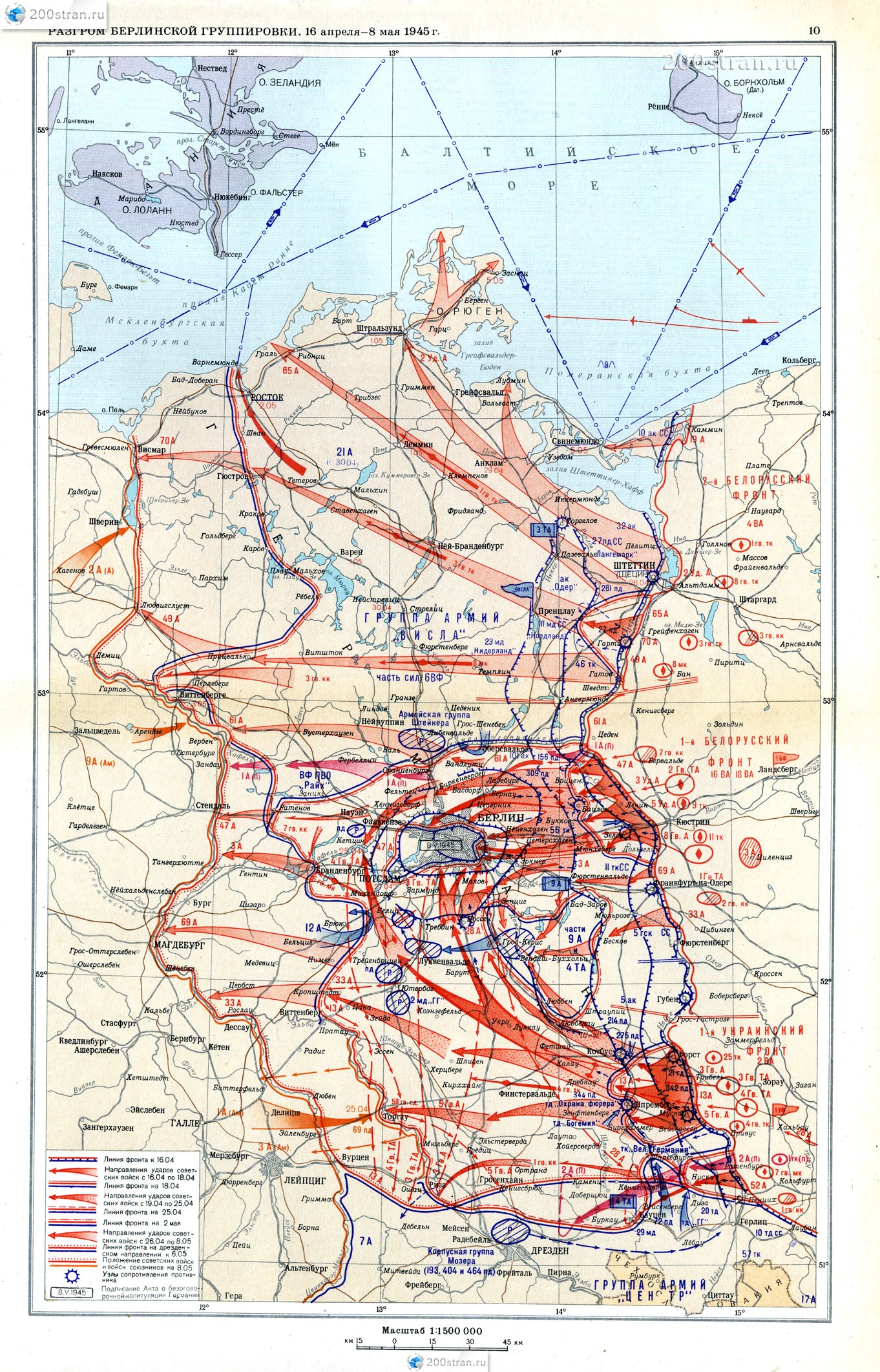 Карта разгрома берлинской группировки. 16 апреля — 8 мая 1945 г. | Map of the defeat of the Berlin group. April 16 - May 8, 1945