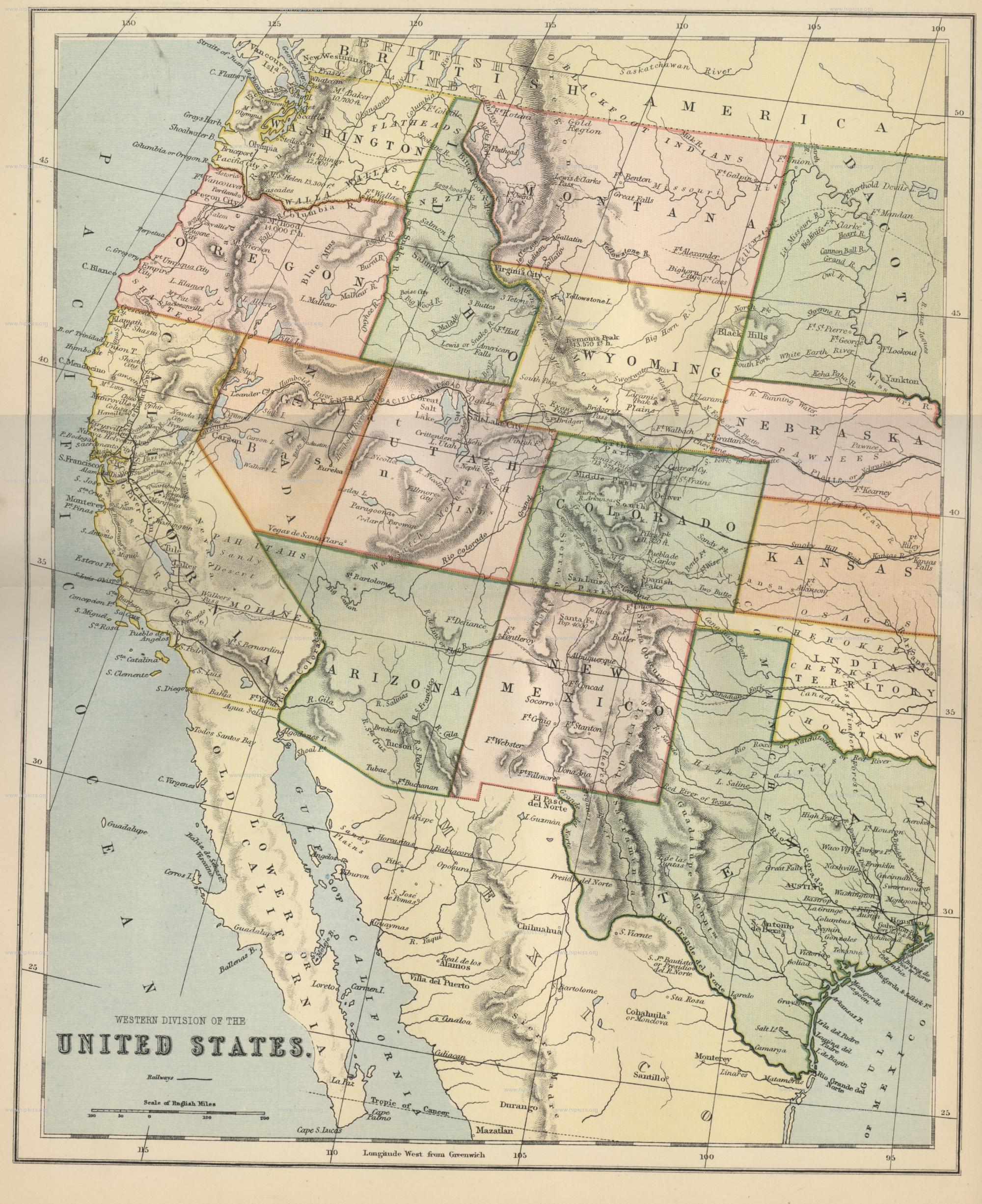 Историческая карта США 1920 года (Западные штаты)