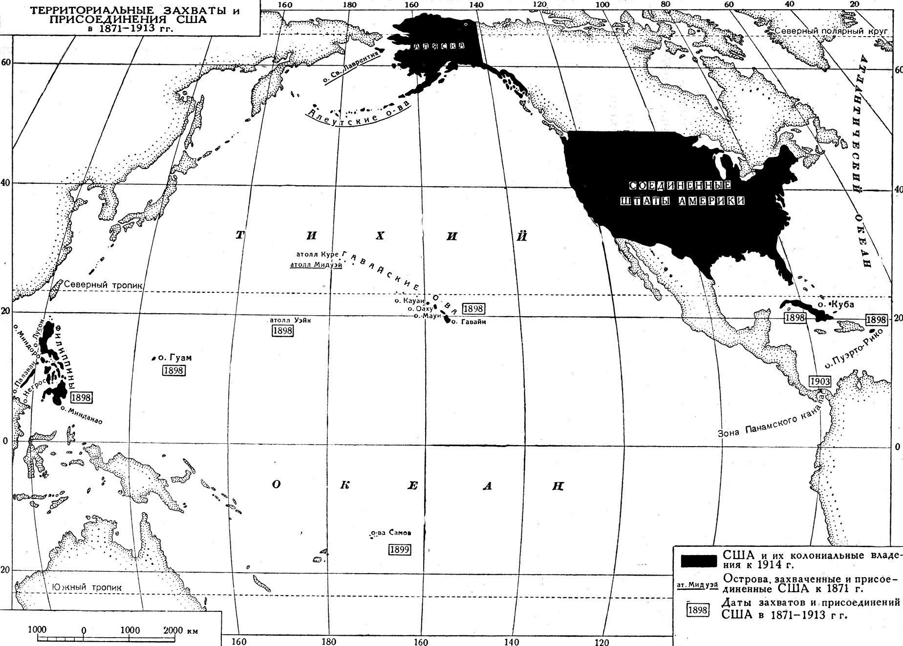 Карта территориальных захватов и присоединений США в 1871-1913 гг.