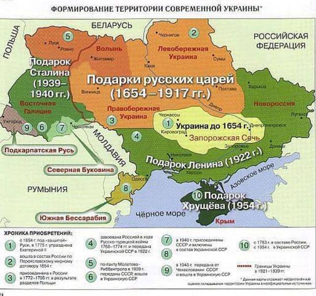 Карта приращения Украины новыми территориями начиная с 1654 года