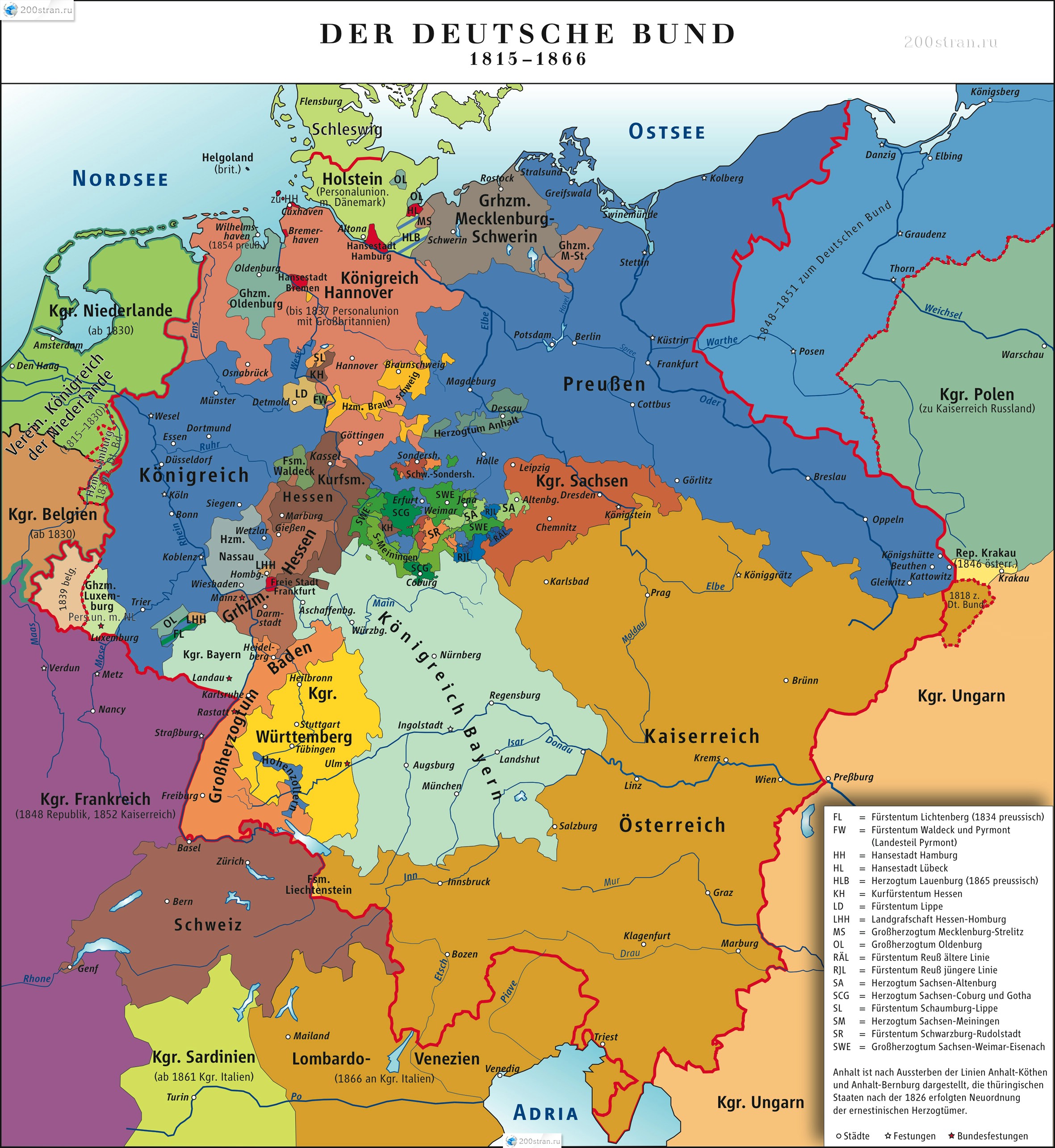 Карта Немецкой федерации 1815-1866гг. | Map of the German Federation of 1815-1866 years.