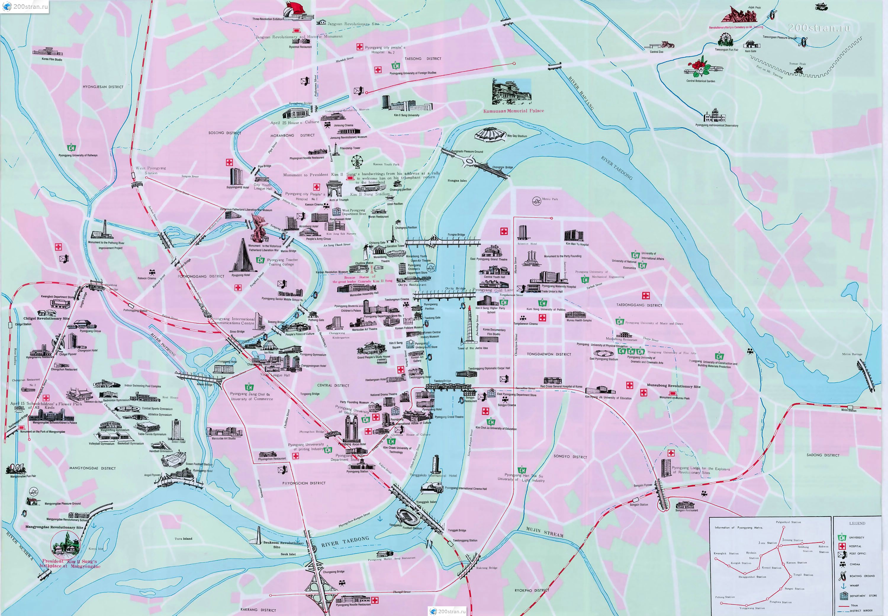 Подробная туристическая карта Пхеньяна | Detailed tourist map of Pyongyang