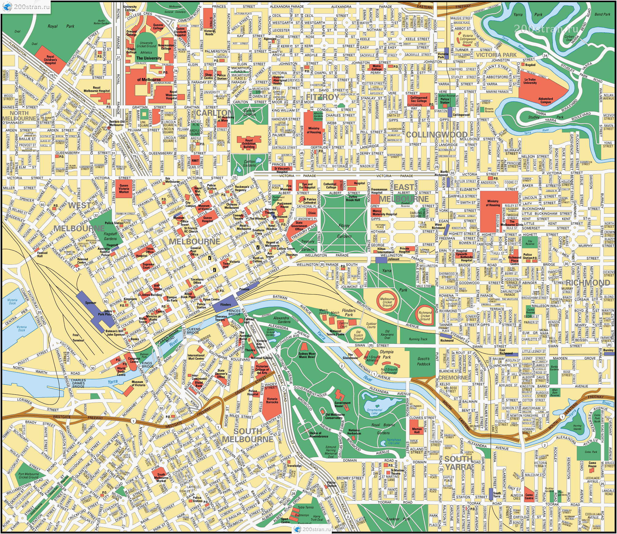 Подробная карта Мельбурна | Detailed map of Melbourne