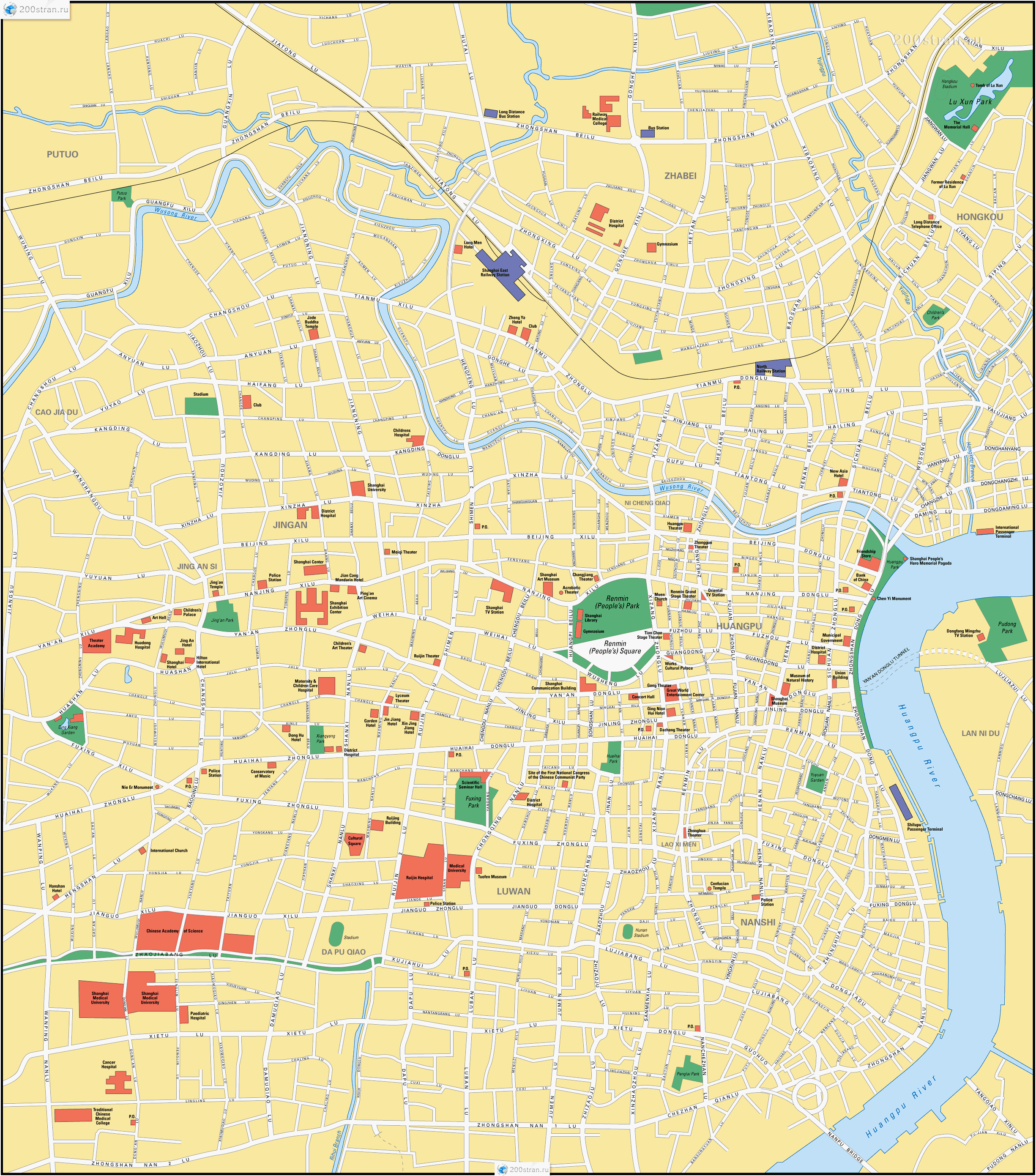 Подробная карта Шанхая | Detailed map of Shanghai