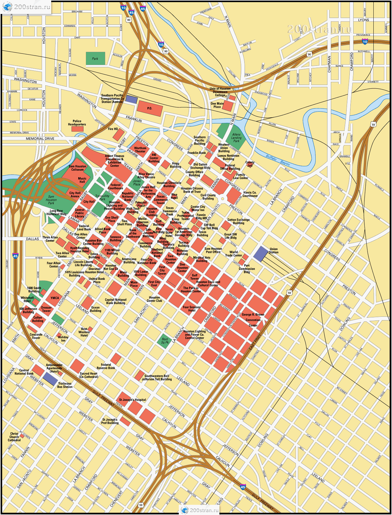 Подробная карта Хьюстона