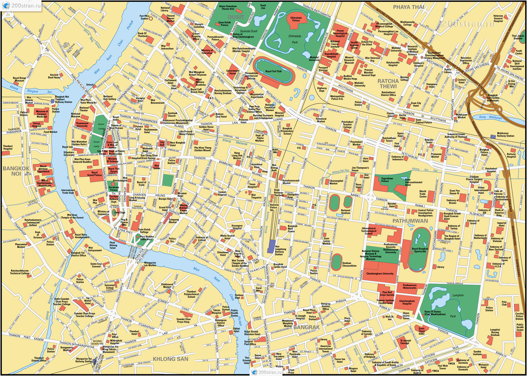 Подробная карта центра Бангкока | Detailed map of central Bangkok