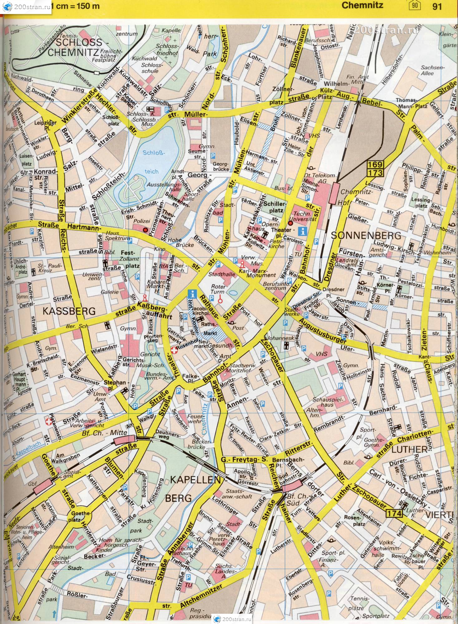 Подробная карта центра Хемница | Detailed map of the center of Chemnitz
