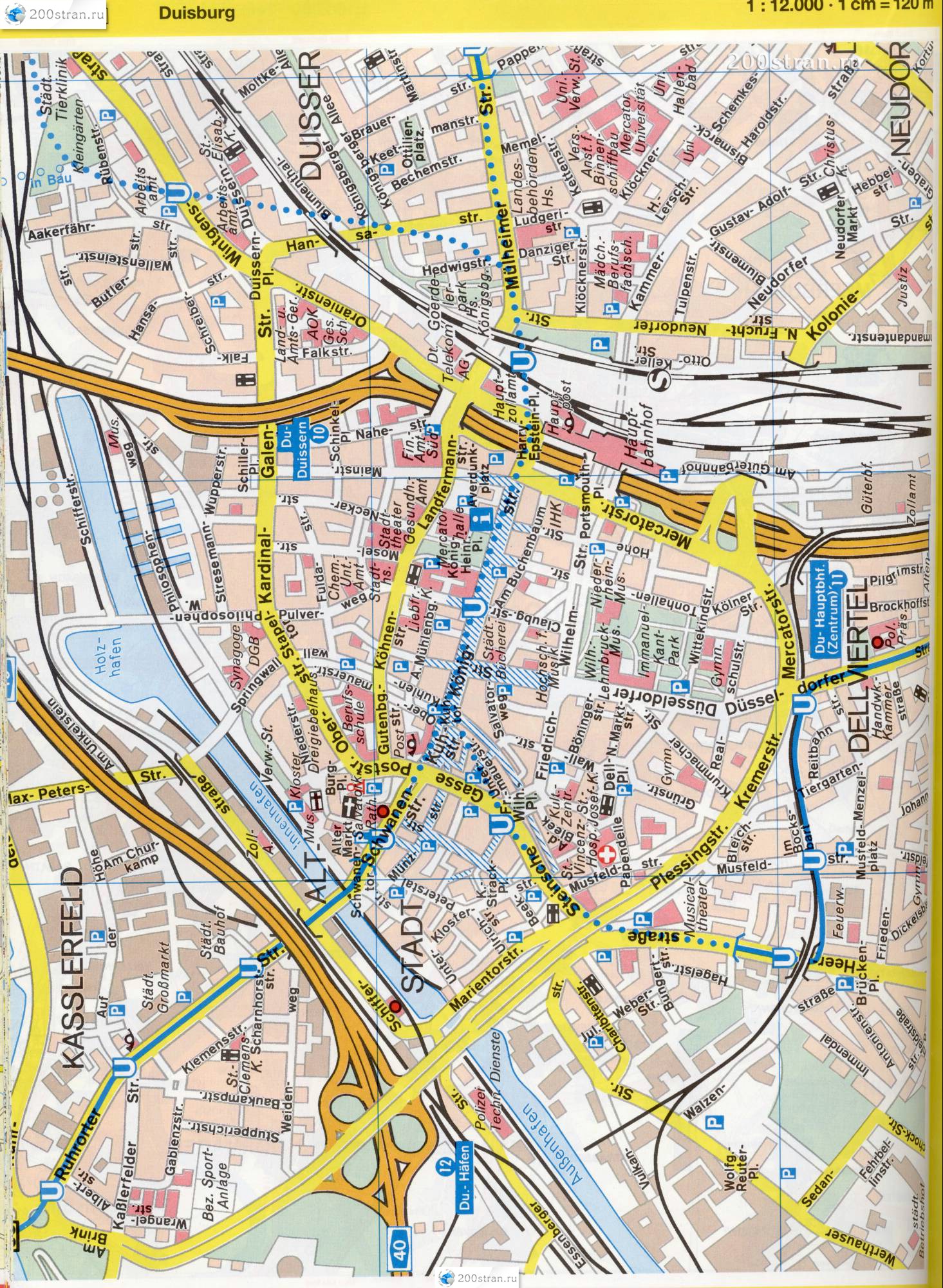Подробная карта центра Дуйсбурга | Detailed map of the center of Duisburg