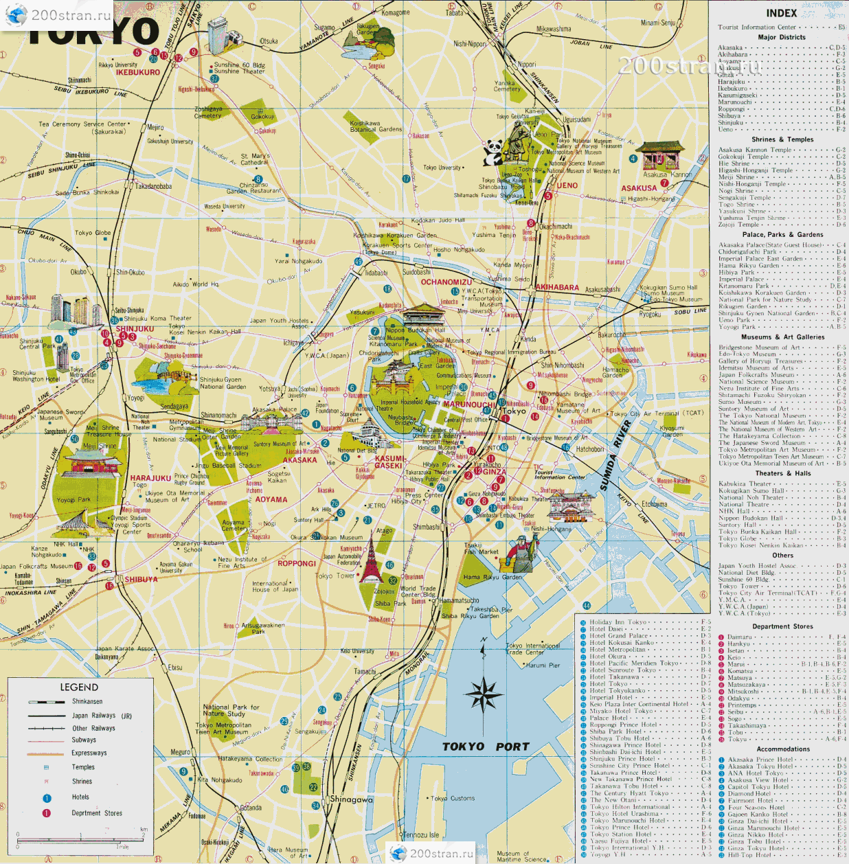 Туристическая карта Токио со всеми достопримечательностями и отелями