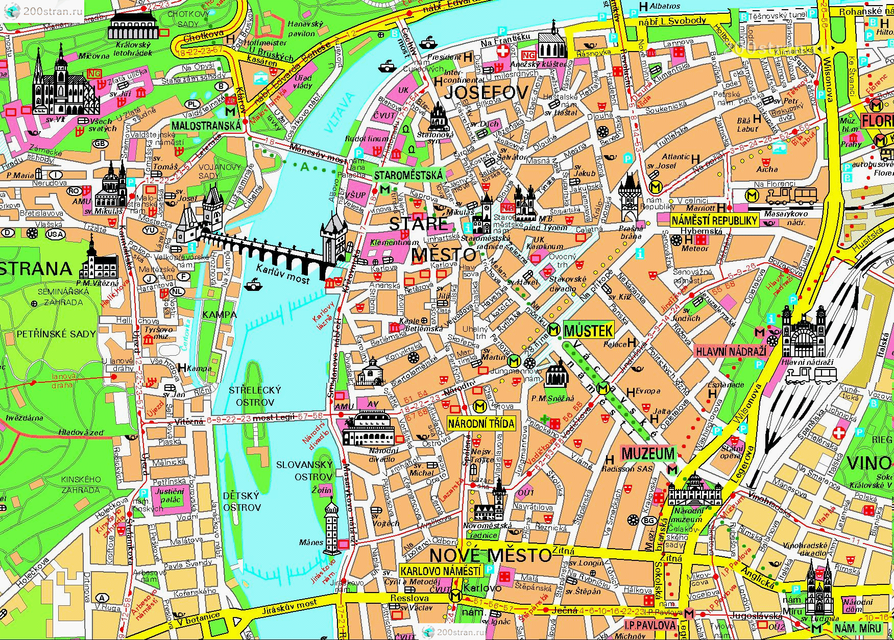 Карта Праги с основными достопримечательностями | Map of Prague with the main attractions
