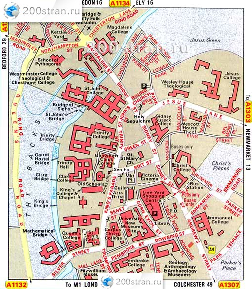 Карта центра Кембриджа, Великобритания | Map Centre Cambridge, United Kingdom