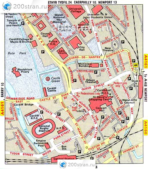 Карта центра Кардиффа, Великобритания | Map Centre Cardiff, United Kingdom