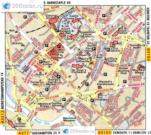 Карта центра Эксетера, Великобритания | Map of the center of Exeter, UK