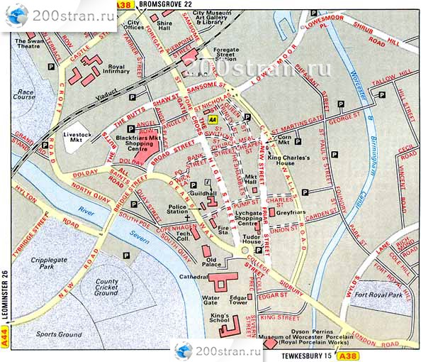 Карта центра Вустера, Великобритания | Map Center Worcester, United Kingdom