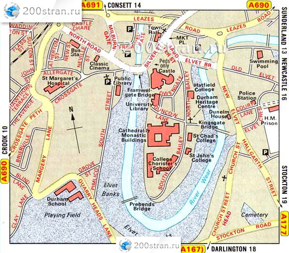 Карта центра Дарема, Великобритания | Map of the center of Durham, UK