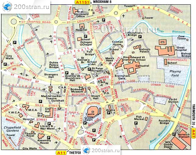 Карта центра Нориджа, Великобритания | Map Centre Norwich, UK