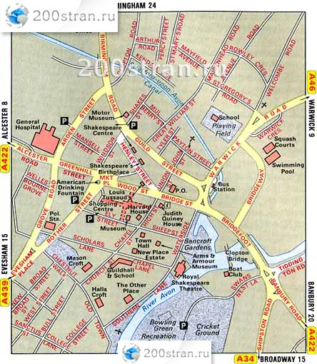 Карта центра Стрэдфорда-на-Эйвоне, Великобритания
