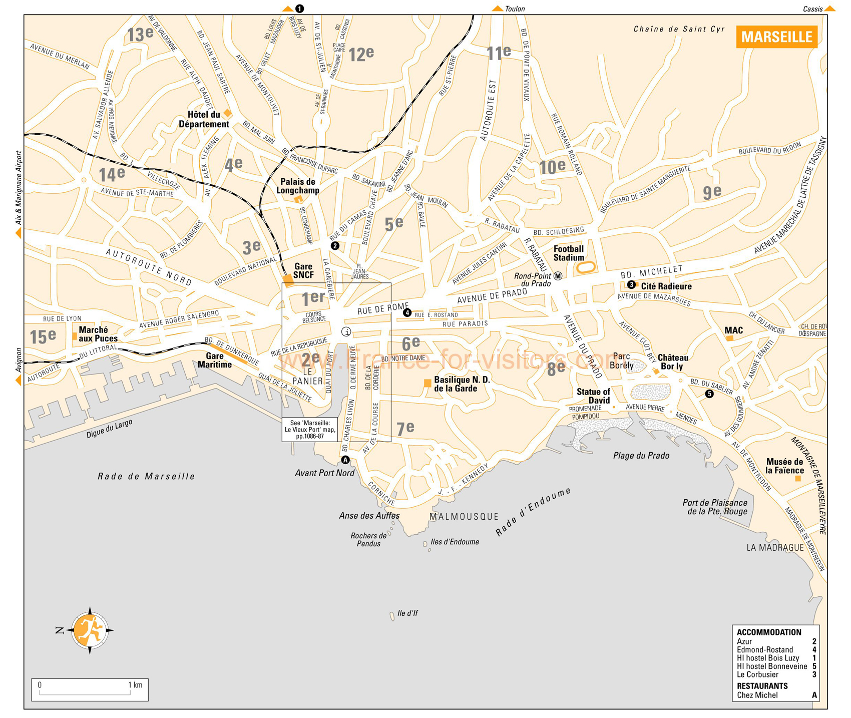 Простая и понятная карта Марселя со всеми улицами | Simple and clear map of Marseille with all the streets