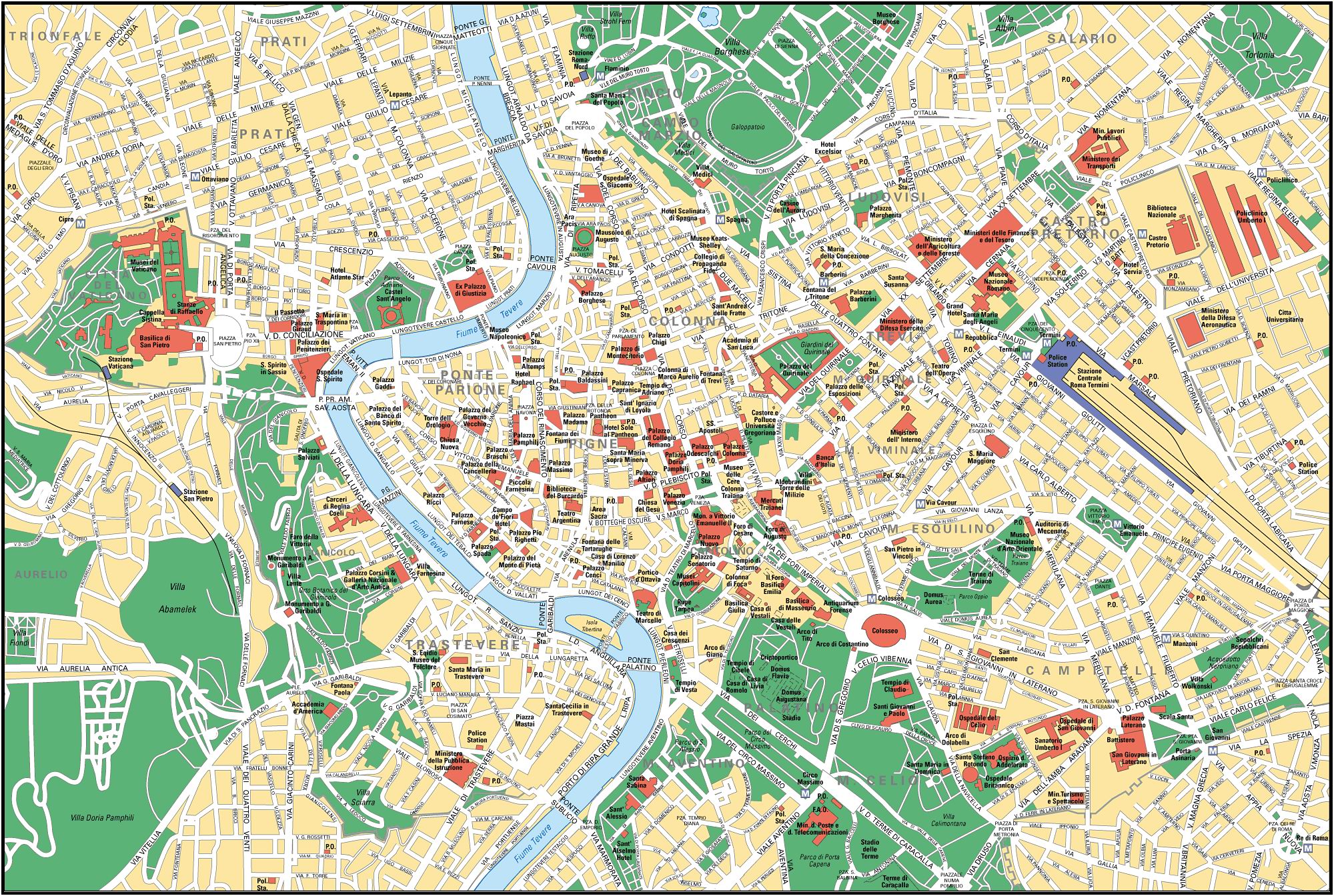 Подробная карта Рима со множеством достопримечательностей | Detailed map of Rome with lots of attractions