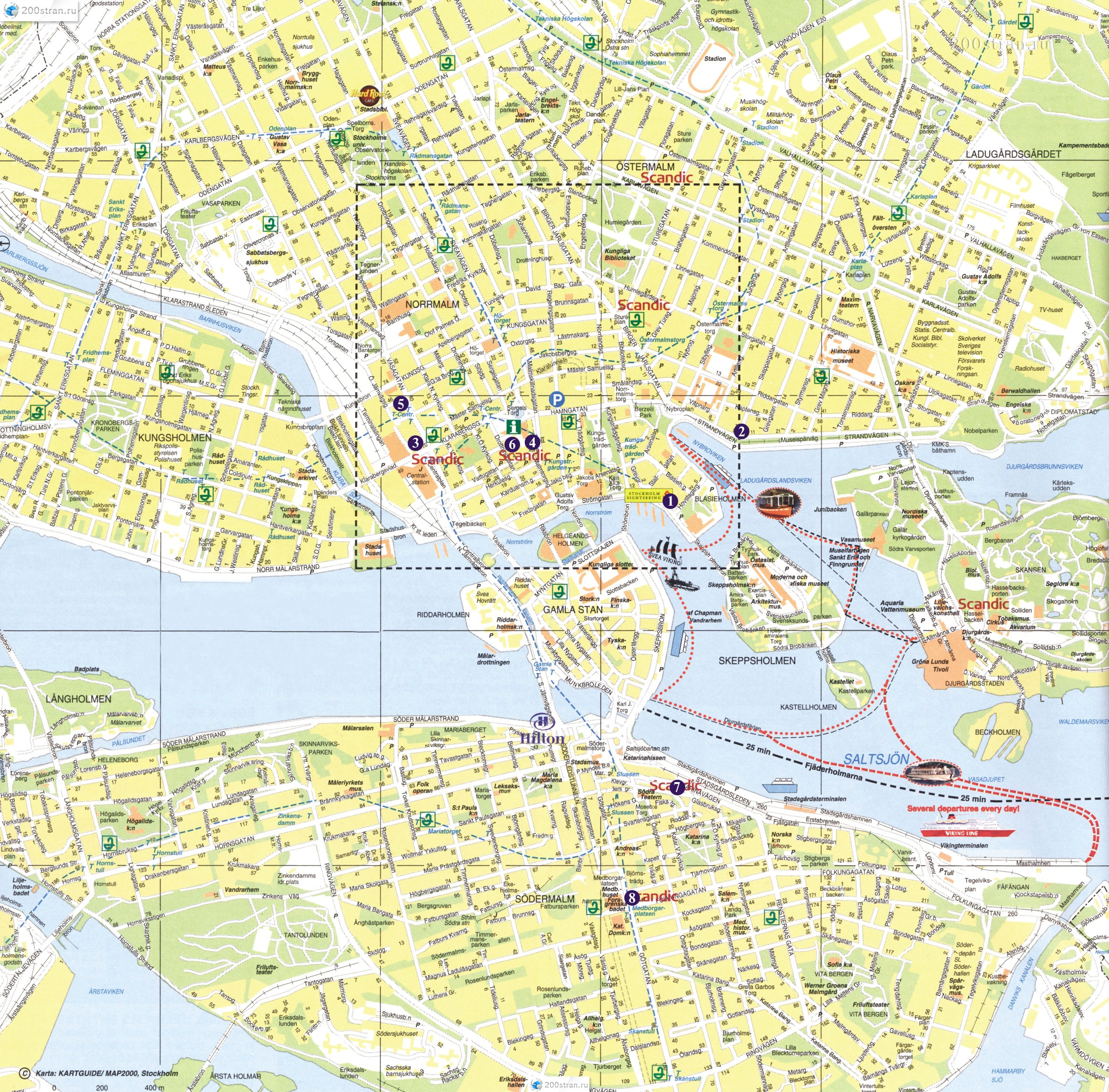 Подробная карта центра Стогольма | Detailed map of Stockholm