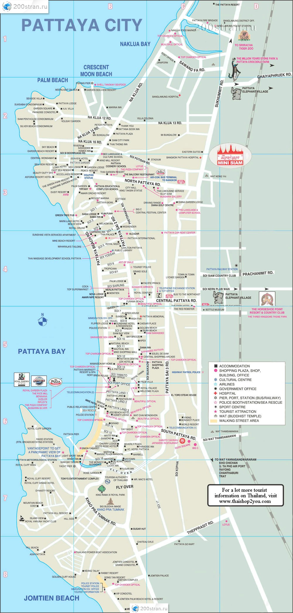 Подробная карта Паттайи со всеми отелями | Detailed map with all hotels Pattaya