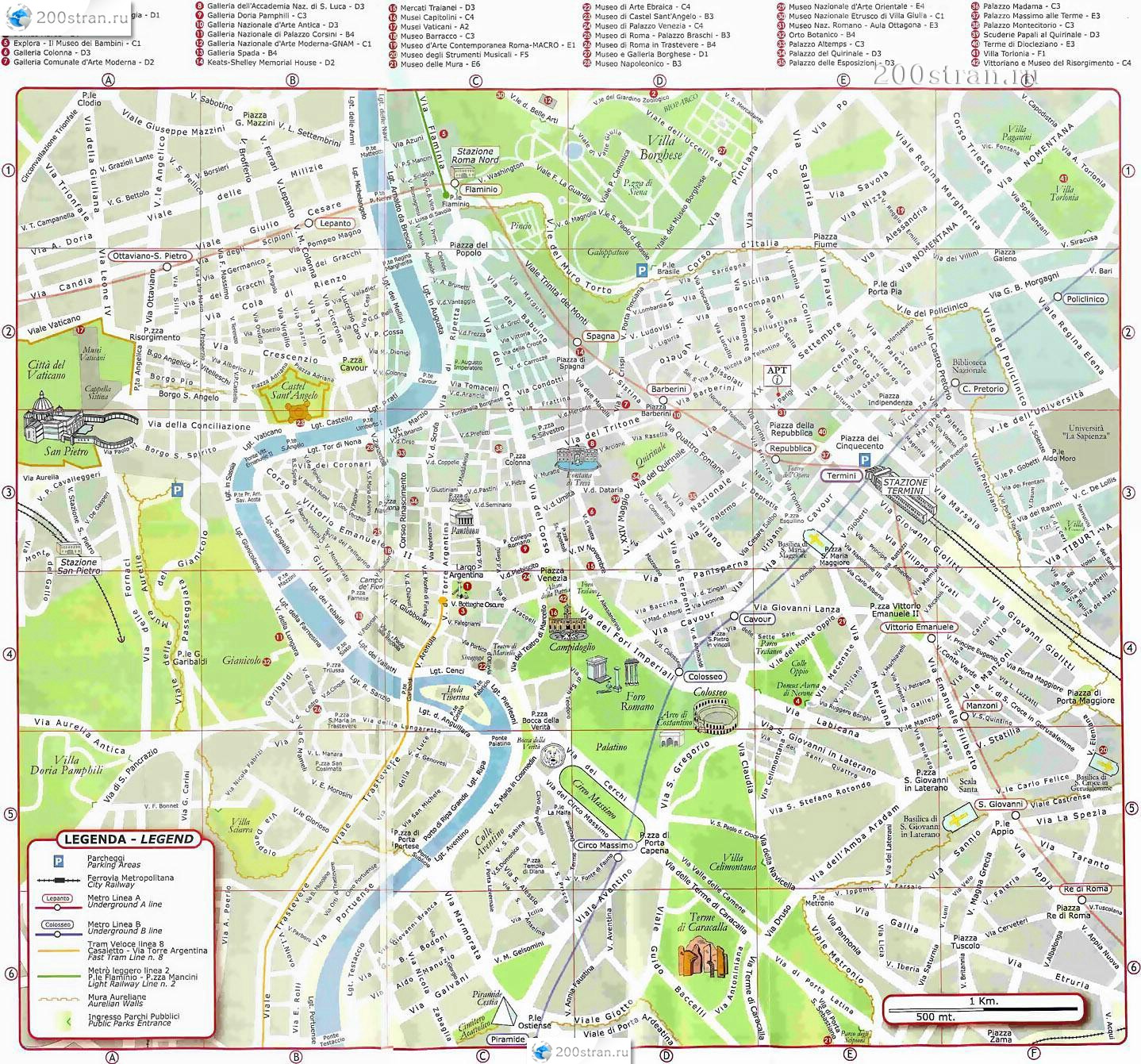 Карта центра Рима с достопримечательностями