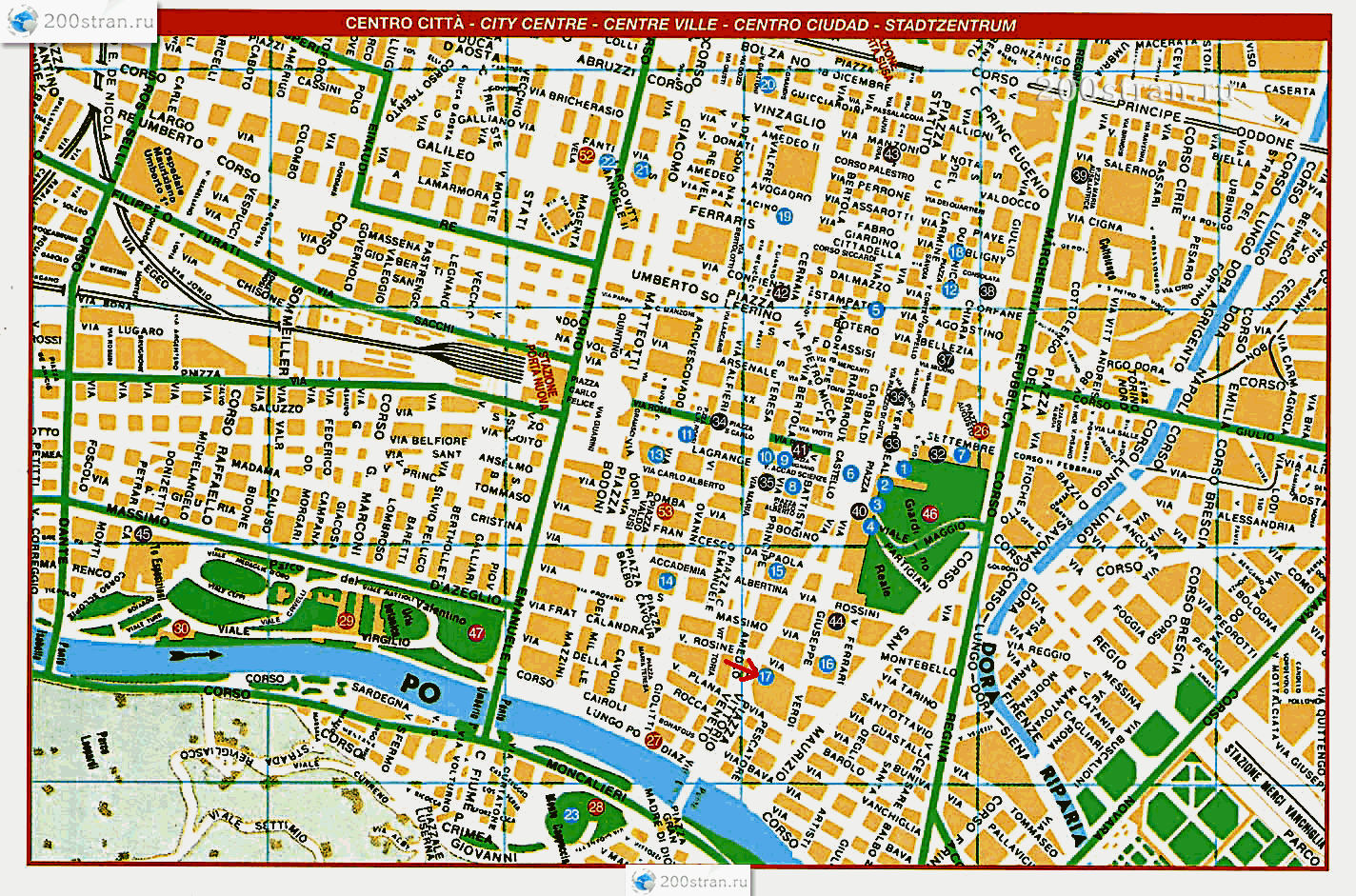 Подробная карта центра Турина | Detailed map of the center of Turin