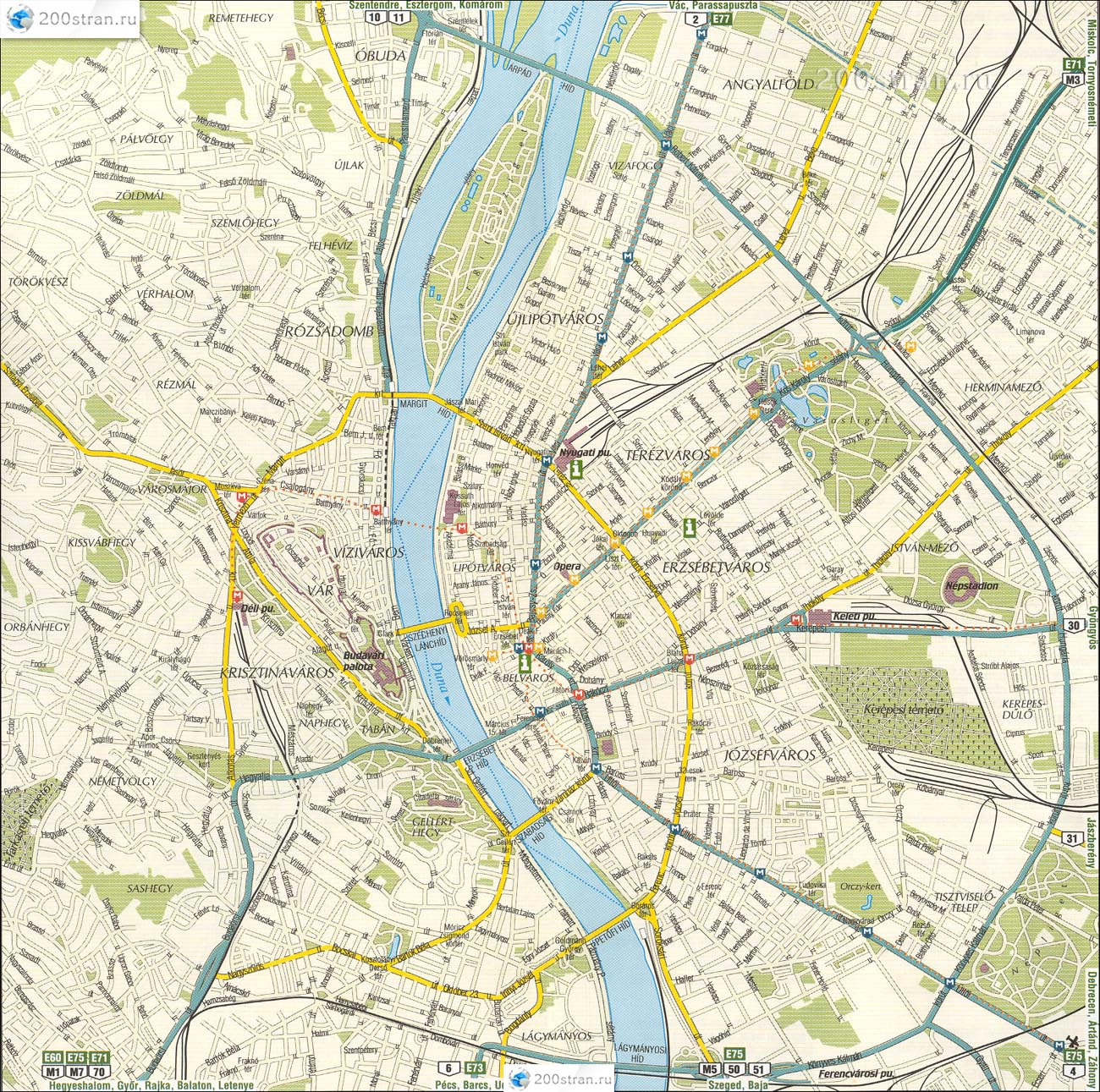 Отличная очень подробная карта Будапешта с посольствами, банкоматами, больницами и прочим