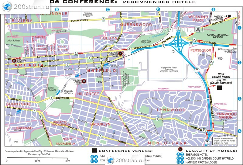 Карта рекомендованных отелей Претории | Map of recommended hotels in Pretoria