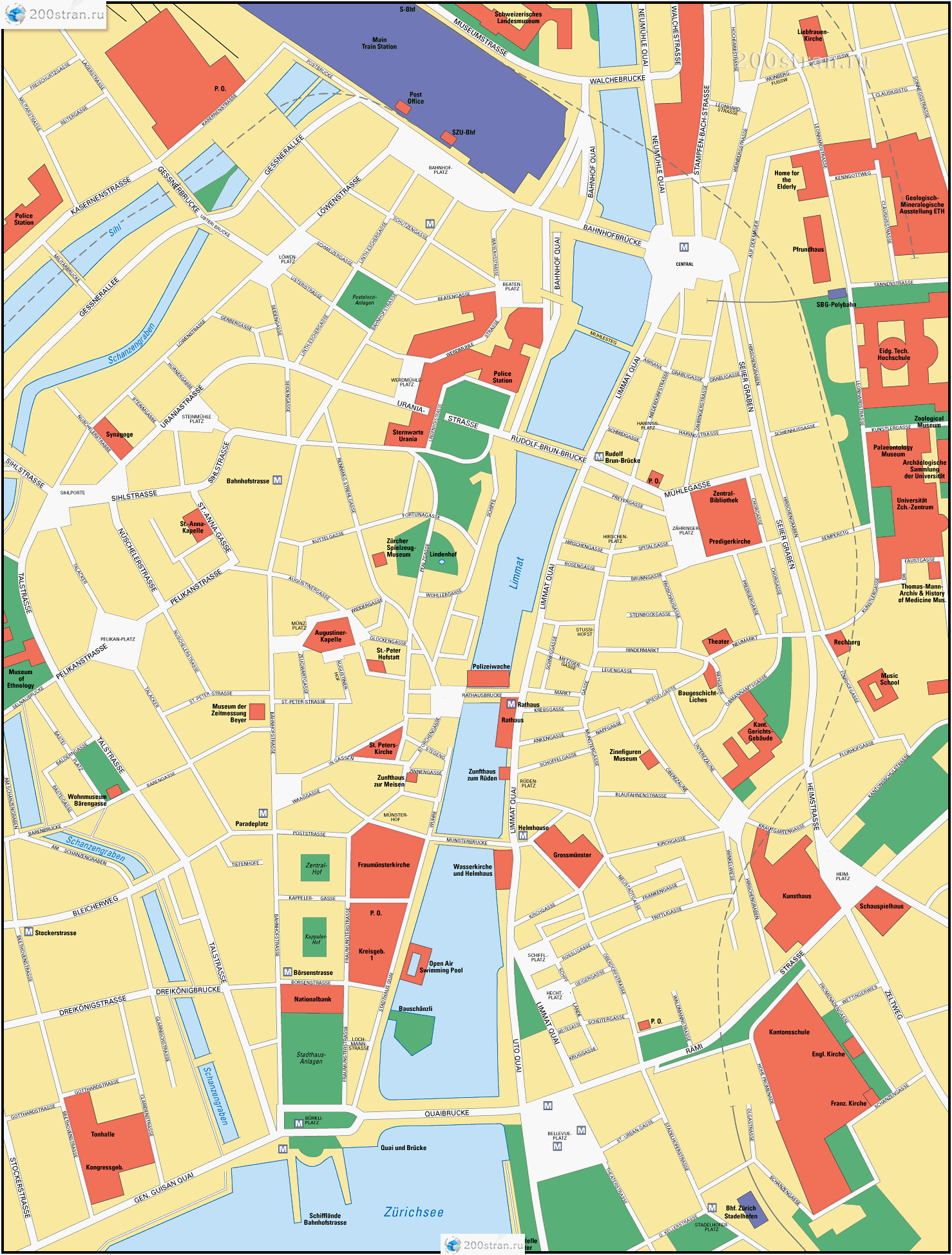 Подробная карта центра Цюриха | Detailed map of the center of Zurich