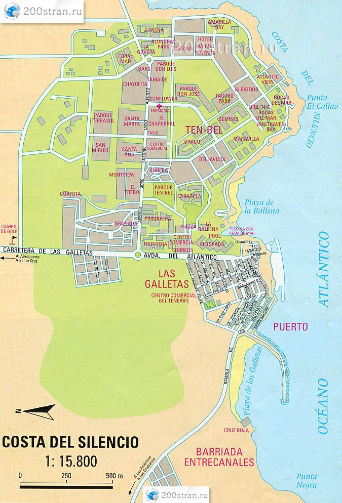 Карта побережья Costa del Silencio (Тен Бель) - остров Тенерифе (юг)