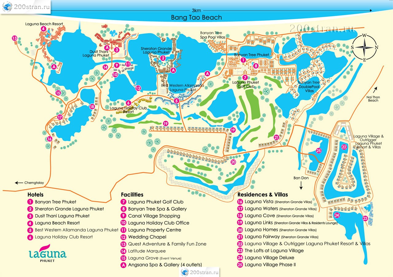 Карта лагуны в Bang Tao Beach со всеми отелями, о.Пхукет