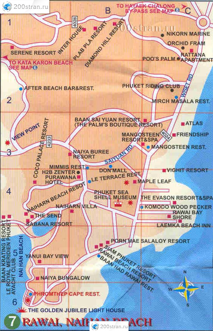 Карта пляжа Раваи со всеми отелями, Пхукет