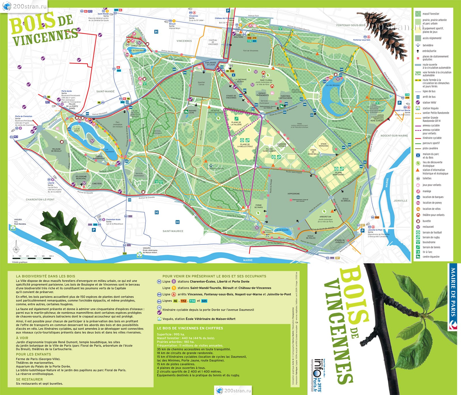 Карта парижского парка Bois de Vincennes Park