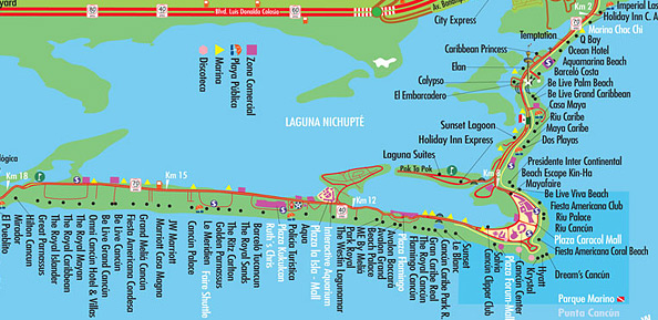 Карта острова Косумель со всеми достопримечательностями и местами для дайвинга