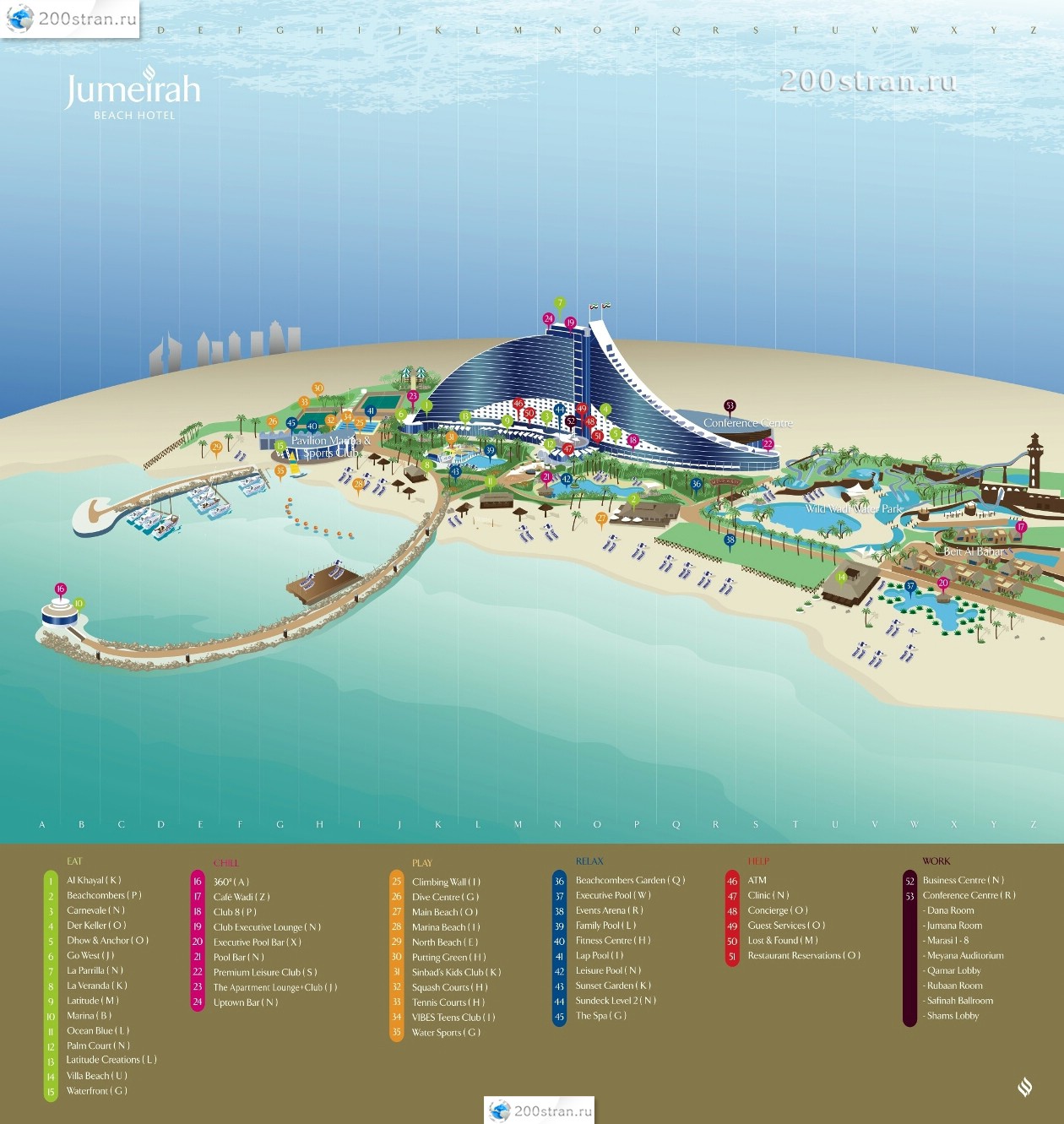 Схема (карта) отеля Jumairah Beach Hotel, Дубаи | Scheme (map) Hotel Jumairah Beach Hotel, Dubai