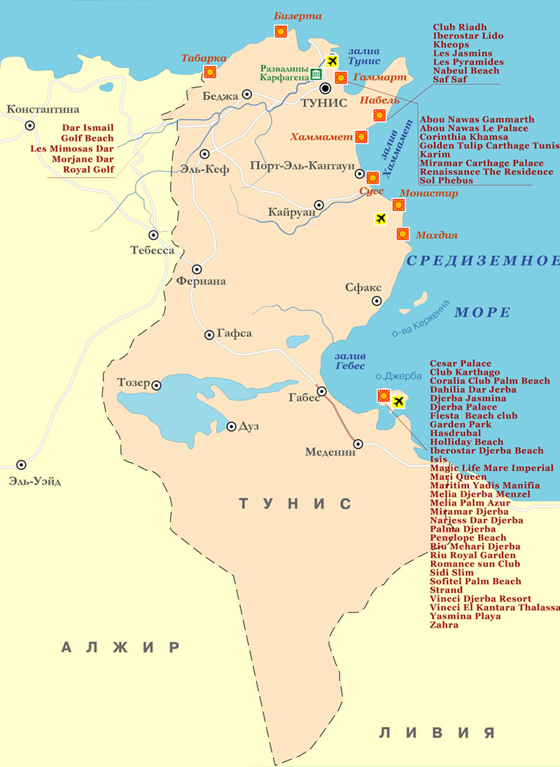 Карты отелей Туниса
