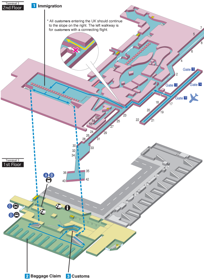 Схема аэропорта Лондона Хитроу (ПРИБЫТИЕ - терминал 3) (LHR - London Heathrow)