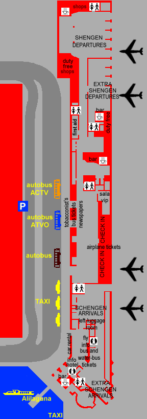 Карта расположения терминалов и паркингов в аэропорте Венеции Marco Polo