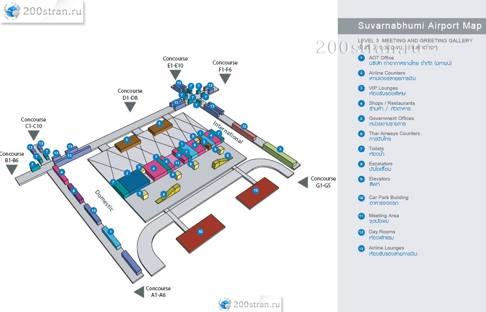 Схема аэропорта Бангкока "Суванапум" (Suvarnabhumi Airport). 3й этаж.