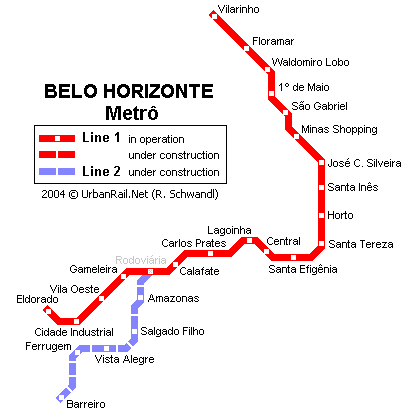 Схема метро Бьелу-Оризонти | Metro map Biel Horizonte
