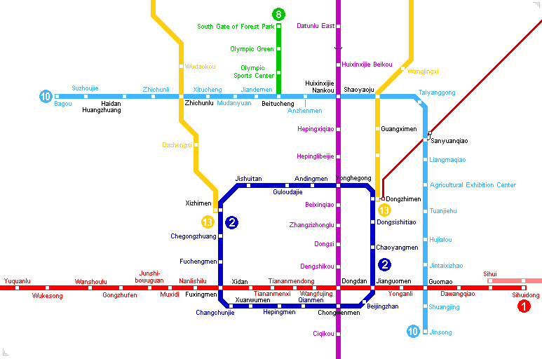 Схема метро Пекина (центр) | Scheme of subway in Beijing (center)