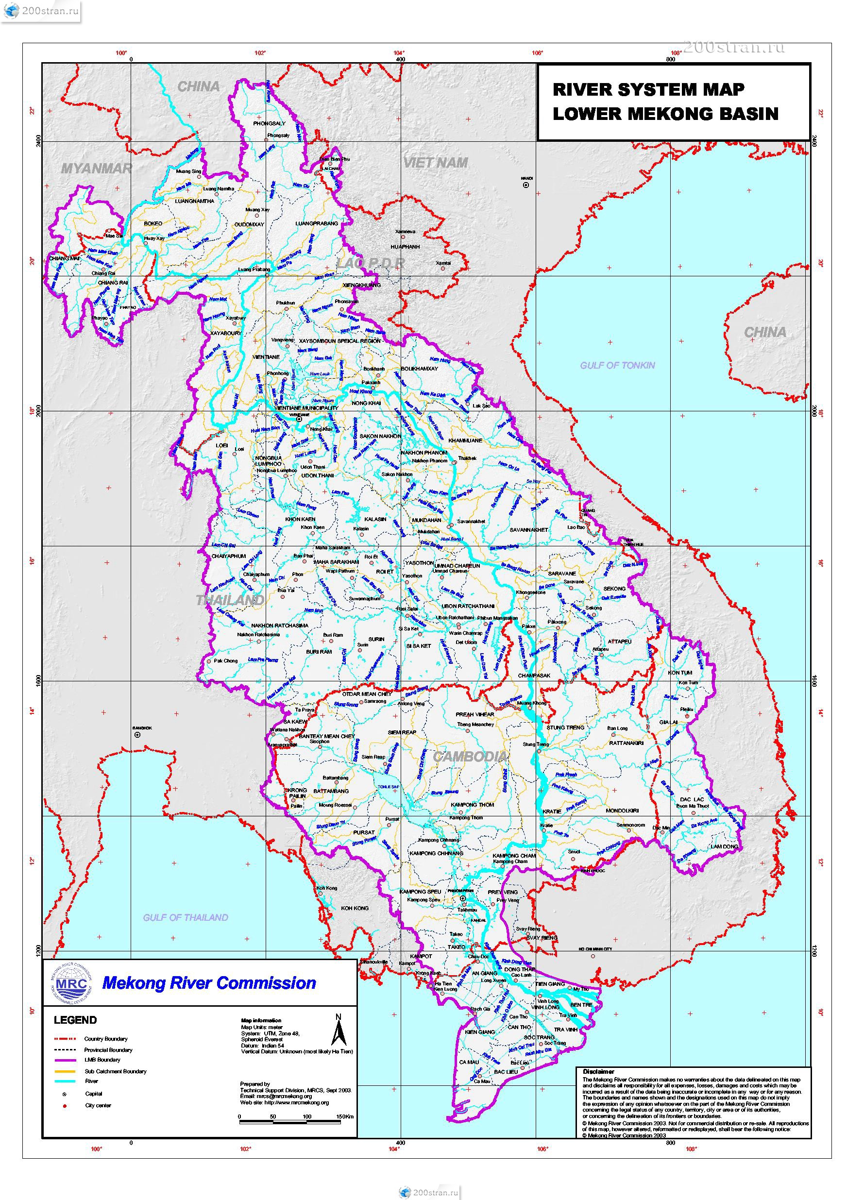 Карта реки Меконг со всеми притоками | Map of the Mekong River with all its tributaries