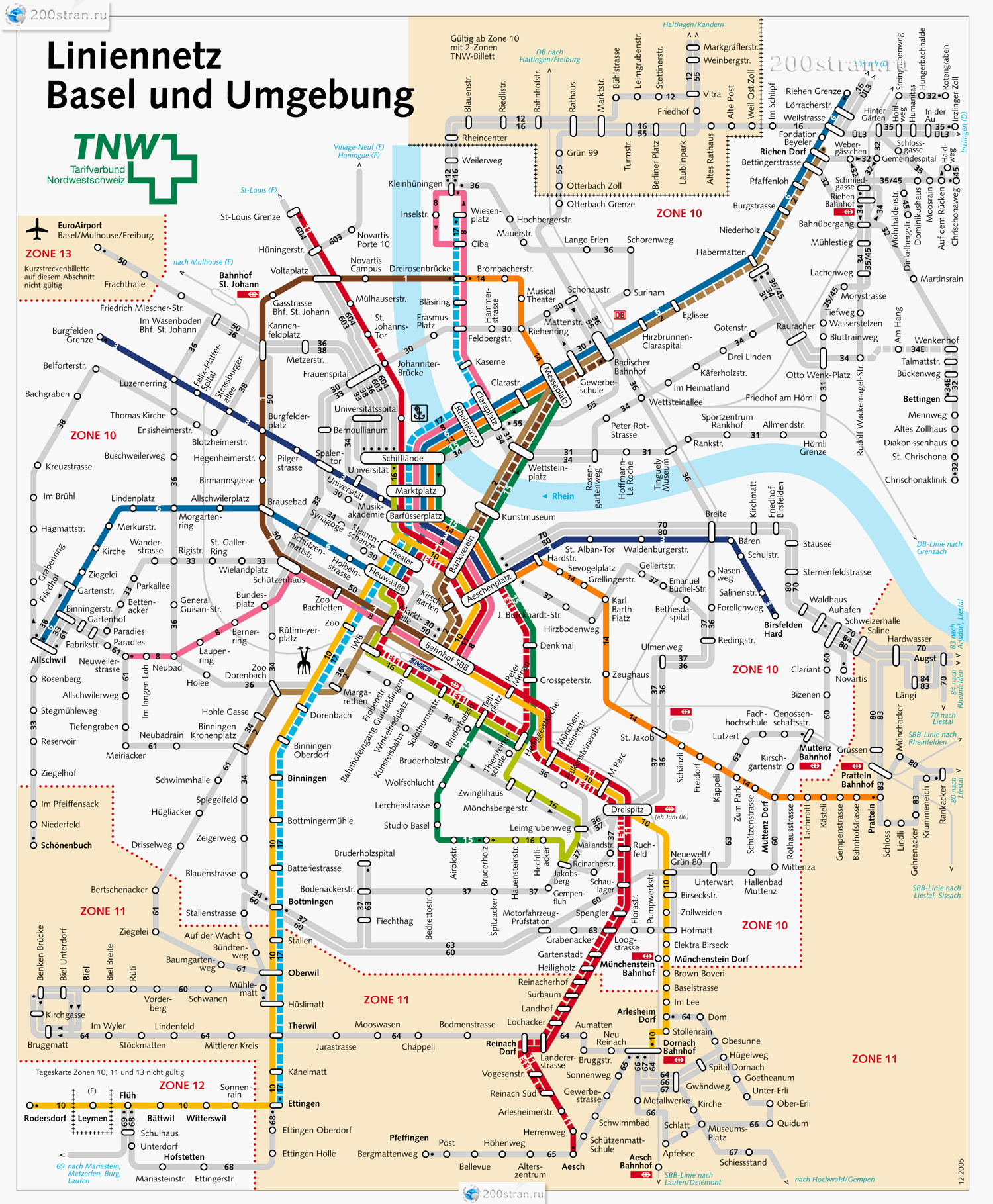Схема движения общественного транспорта Базеля | The scheme of public transport in Basel