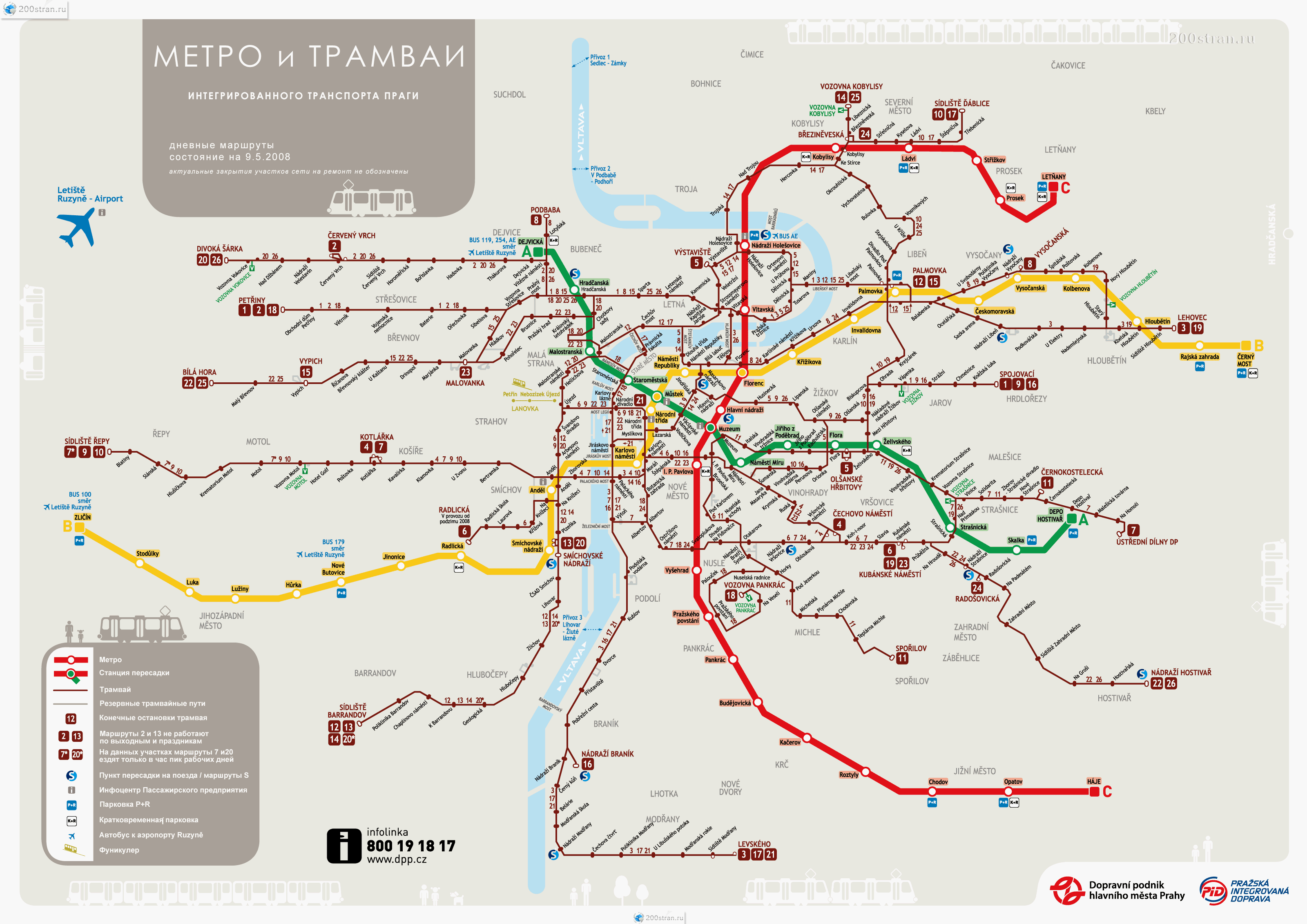 Схема всего общественного транспорта Праги