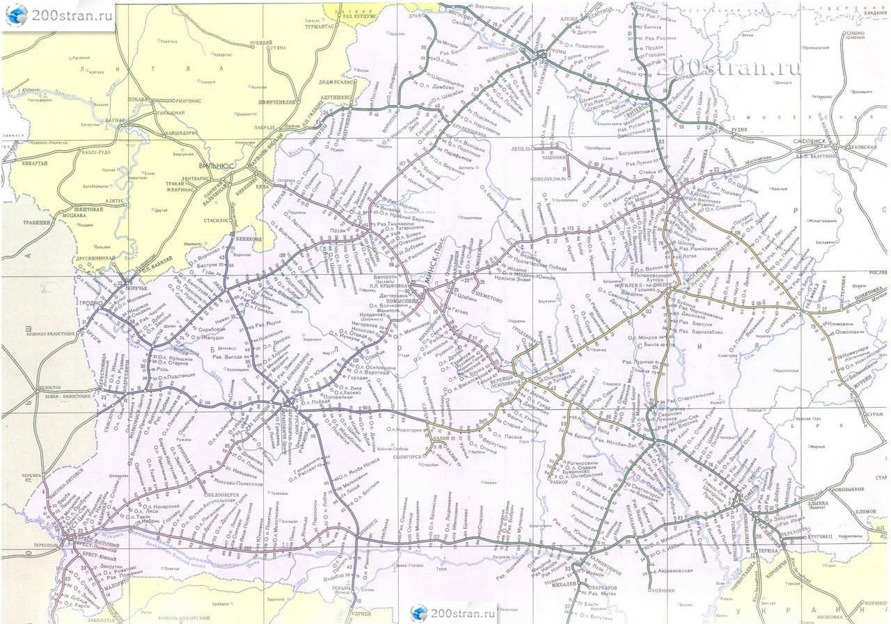 Подробная карта жележных дорог Беларуси | Detailed map of railways in Belarus